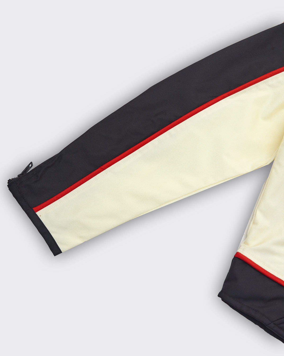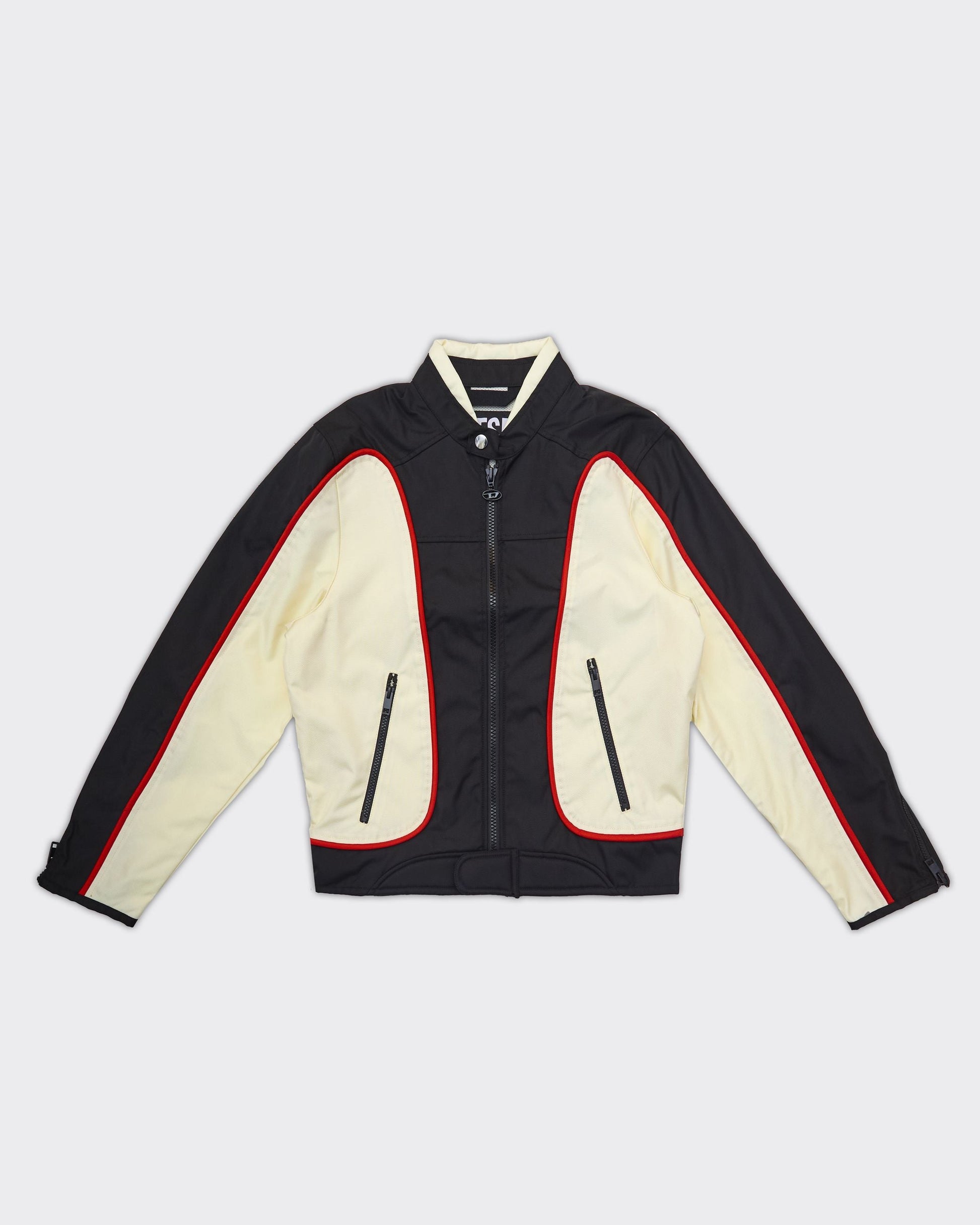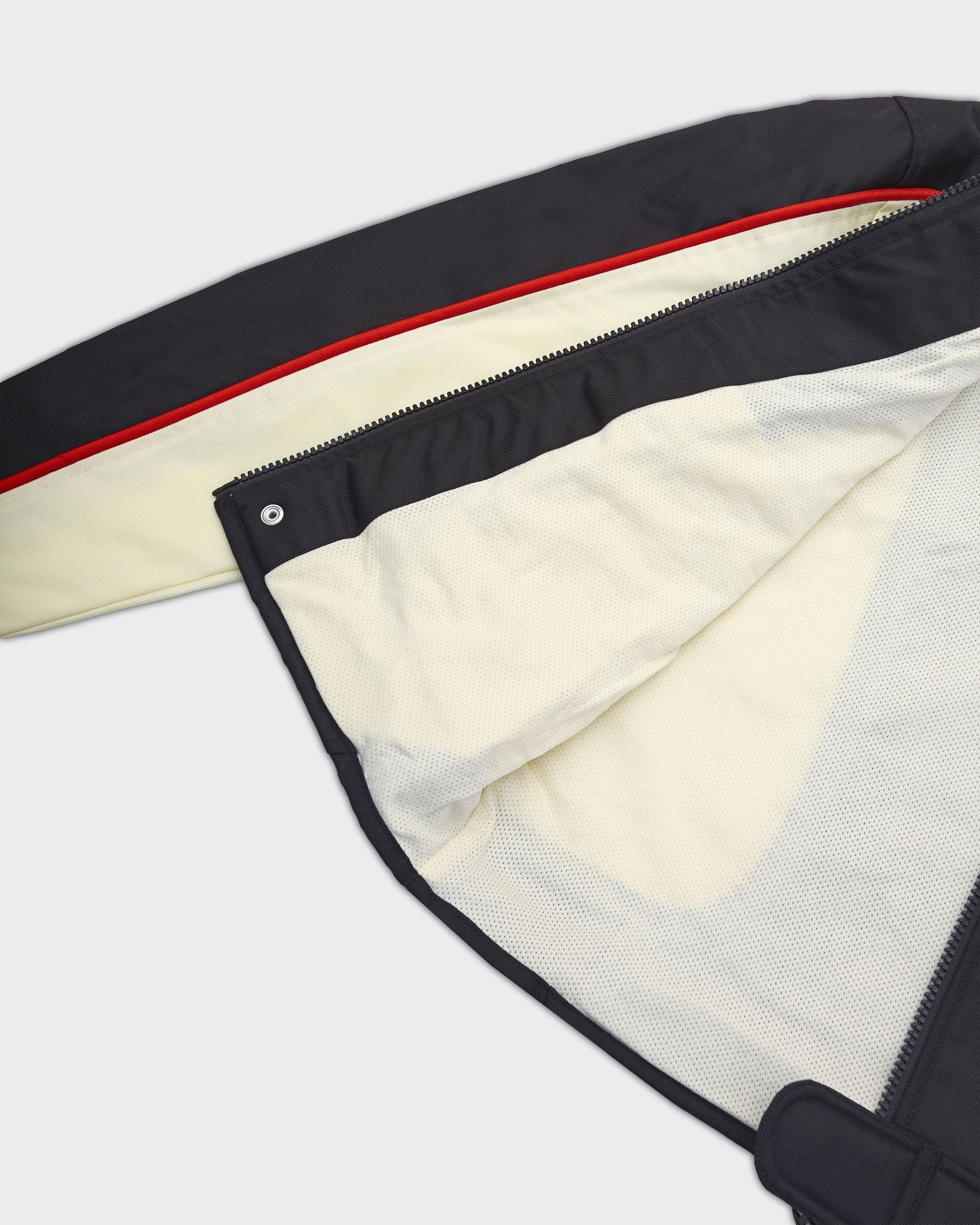 xGiacca da uomo con una silhouette biker ispirata agli anni ’90. Il design sportivo color block è realizzato in tela di nylon riciclato, foderato in rete e rifinito con bordi a contrasto. La finitura idrorepellente la rende ideale per le giornate di pioggia.