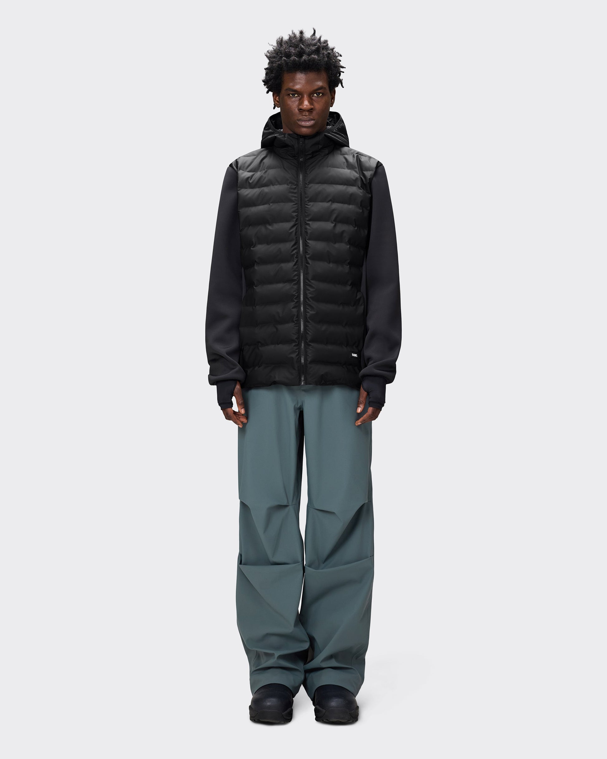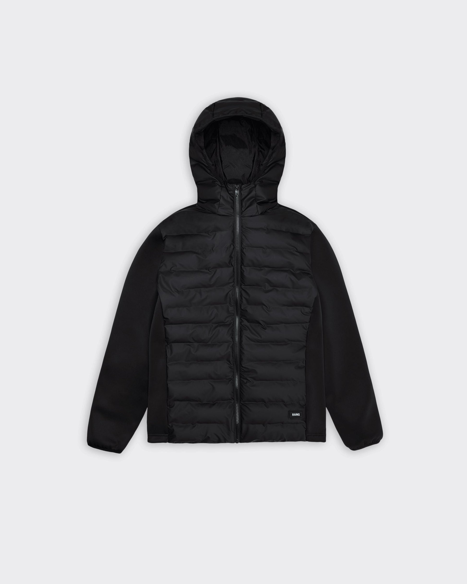 Questa giacca in spesso pile offre proporzioni epurate. Gli inserti a piumino sul cappuccio e sul davanti creano un ibrido tra top layer e layer intermedio.