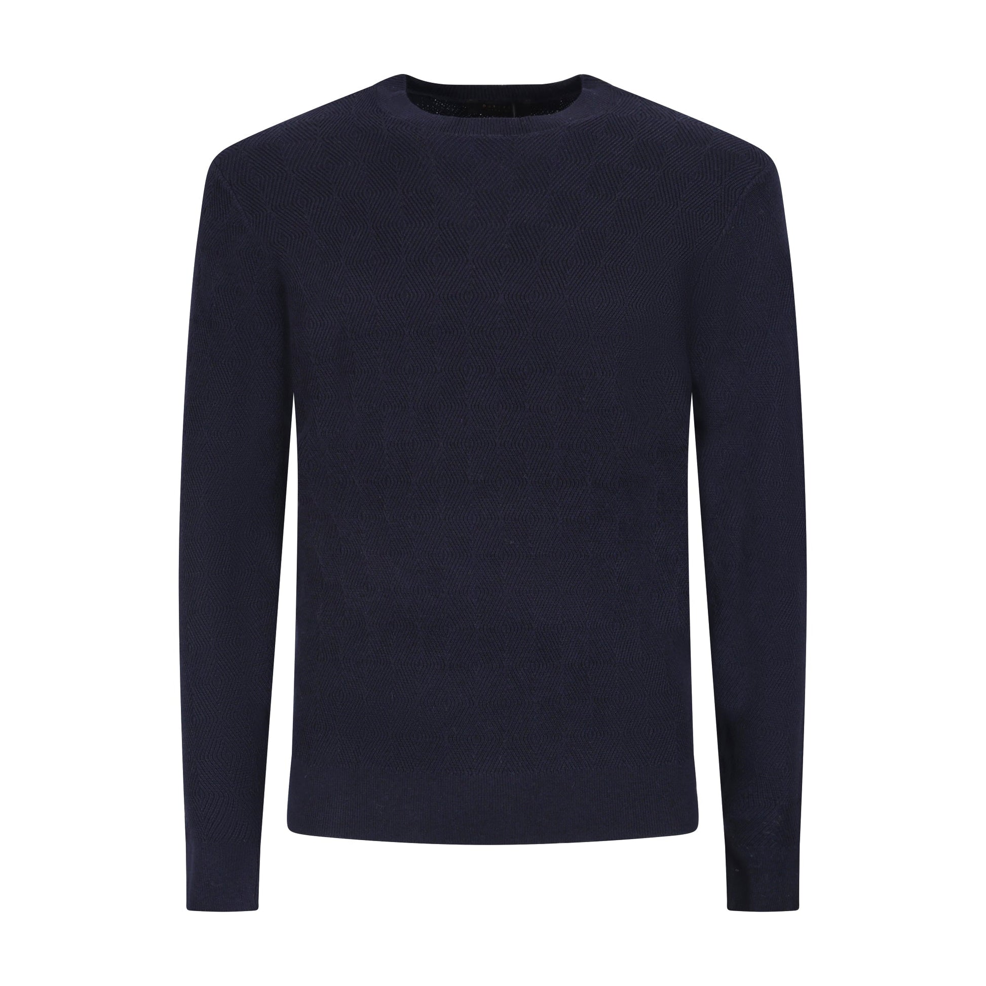 Maglia blu di OUTFIT in lana merinos con effetto intarsio, scollo tondo, bordi e polsi a costine.